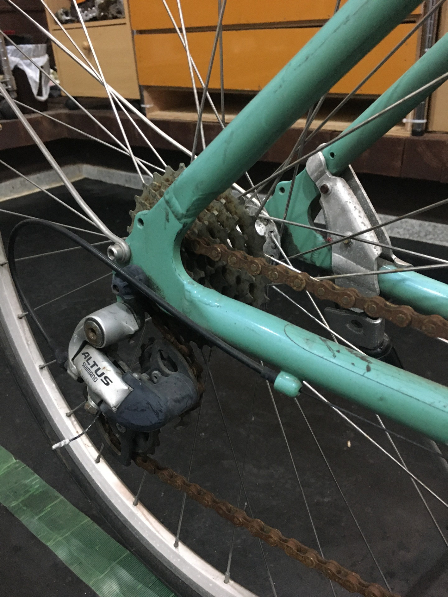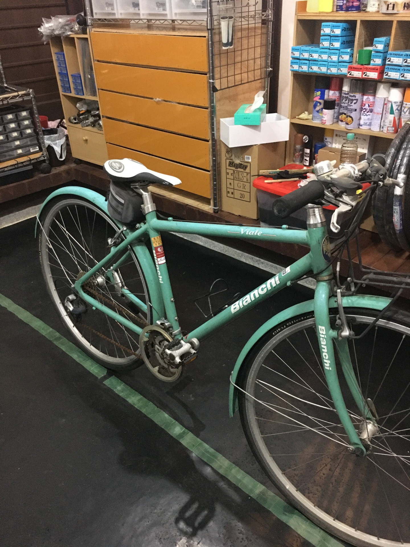 次の標的はコレだ! 2020/05/06 こんにちは。京都府の中央部に位置する京丹波町の自転車店CYCLECAREの小林です。 次はこの自転車をレストアします! BIANCHI Viale(ビアーレ) 2005年モデル 良い感じに街乗り感のあるモデルですなぁ~。 ピカピカに仕上げます!乞うご期待!