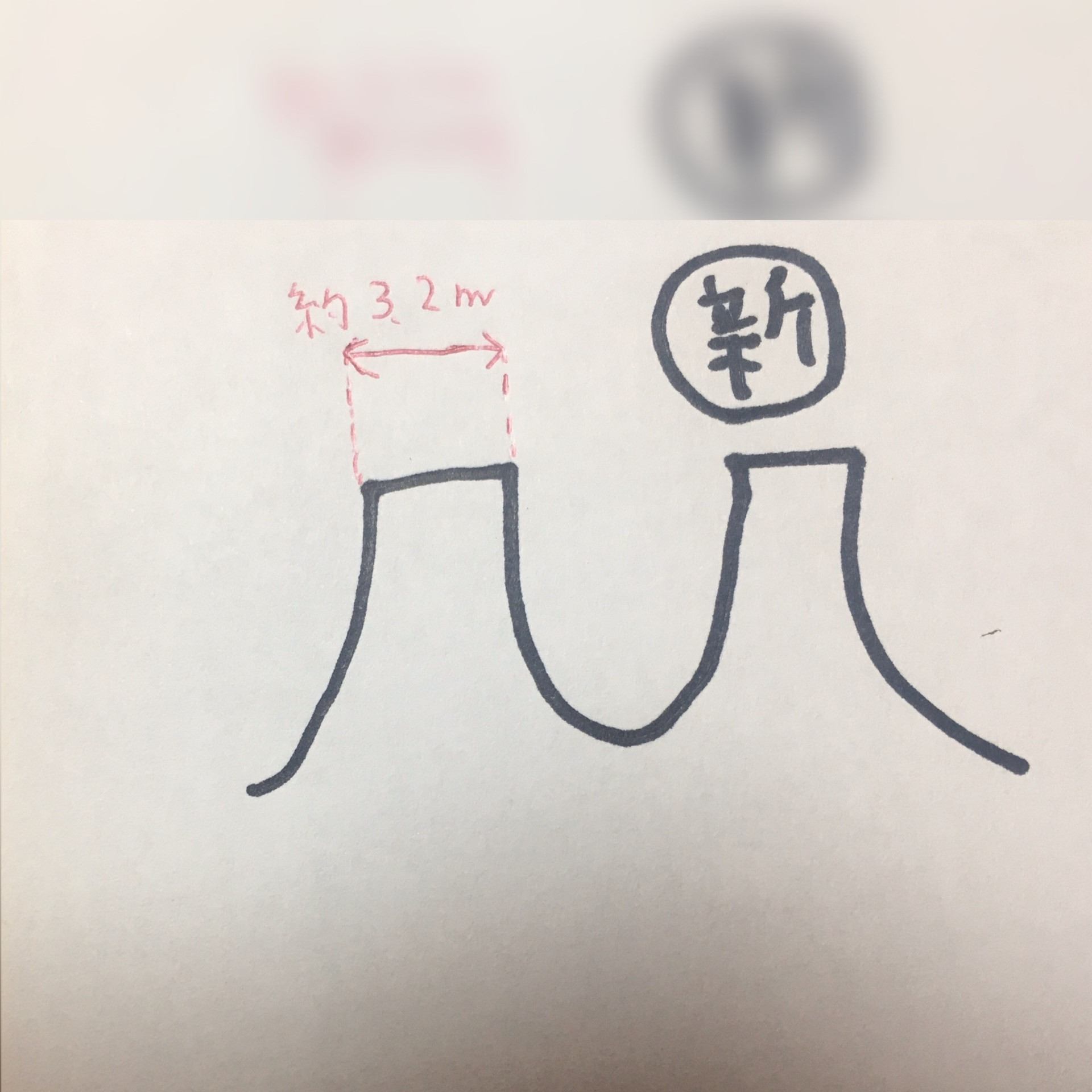 今回は新品と旧品の一番小さそうな山を計測しました。計測中のノギスの写真も撮ったのですが、分かりにくいので絵を描きました!
