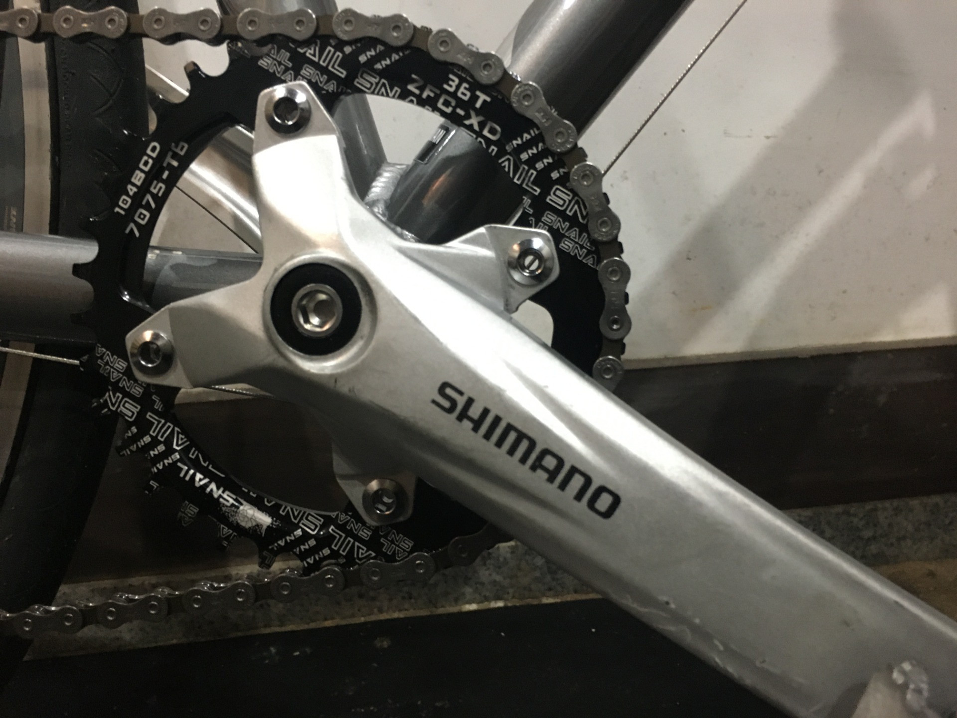 フロントギアは36Tとやや軽めのギア!下りではやや物足りない感じは有りますが、上りは良い感じ!