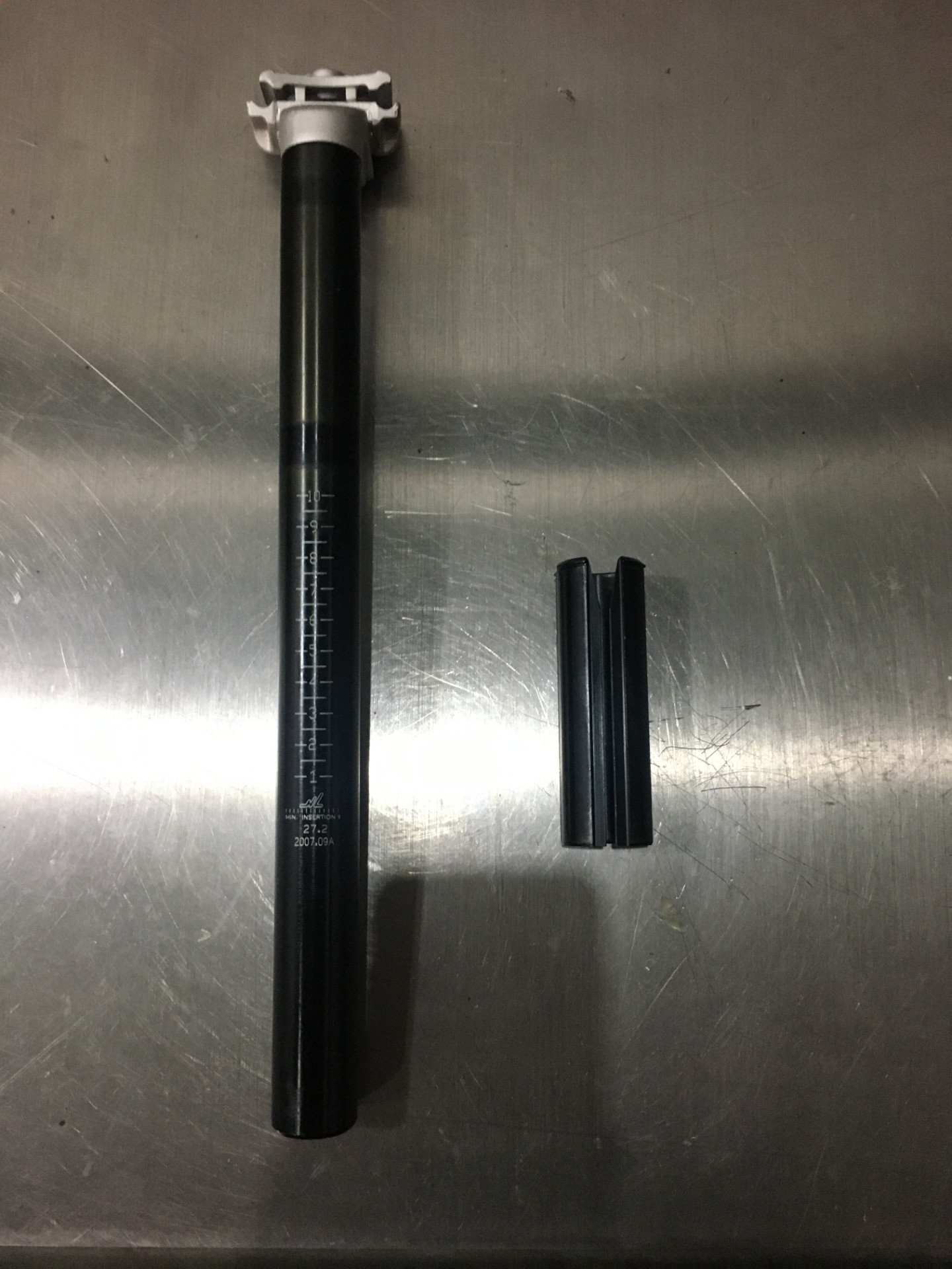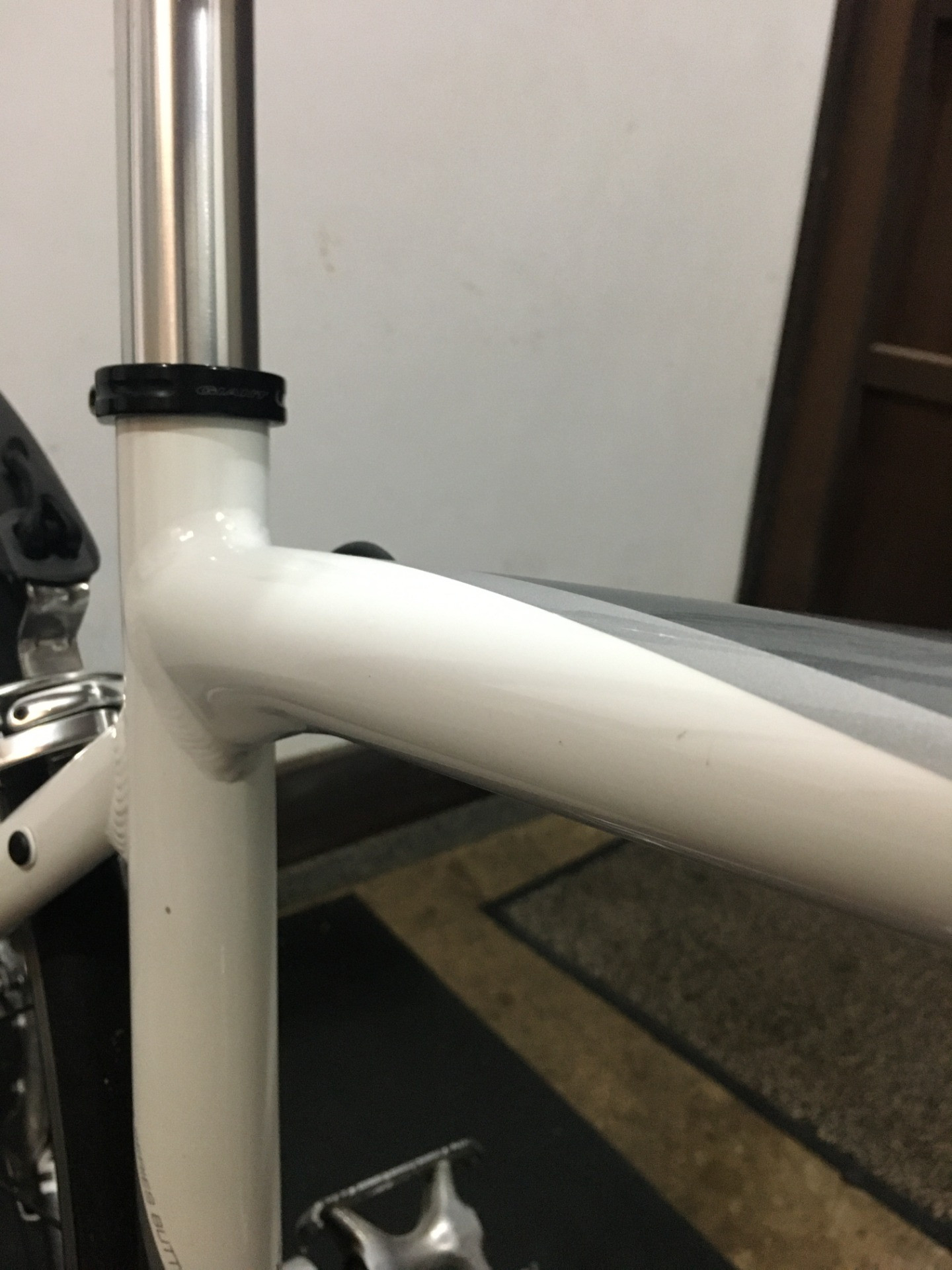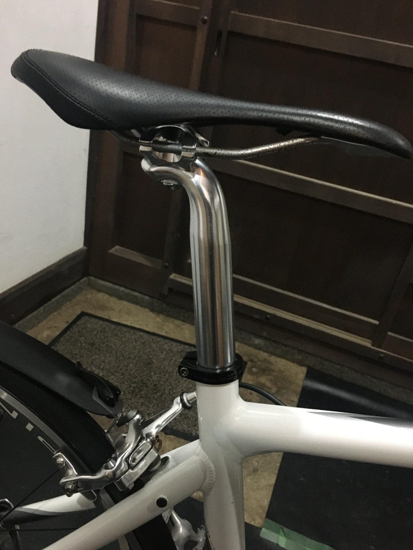 ノーマルはシートポストのしなりを狙ってのことか、フレームは31.6mmシートポストの規格なのに27.2mmシートポストにシムを使って組まれていました。雨水などの侵入を考慮して今回は31.6mmシートポストに付け替えました!