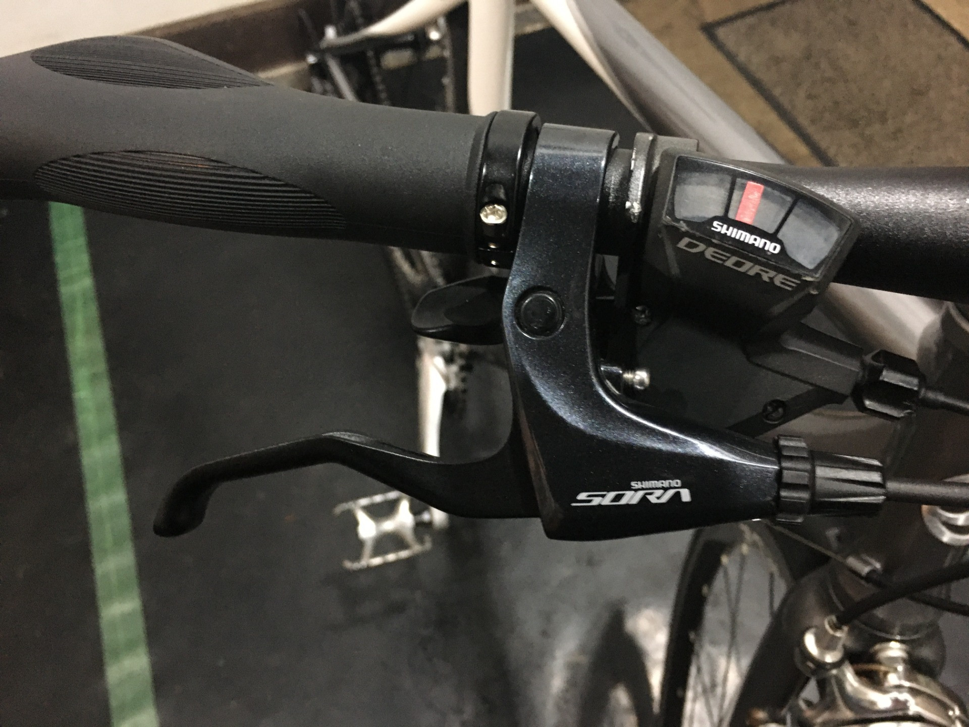 ・ドロップハンドルのSTIレバーよりも力が入りやすく、制動力が強いフラットバー
